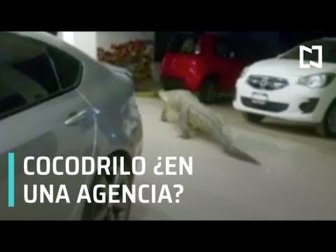 El velador de una agencia de carros captó el momento en que un cocodrilo apareció en el negocio en Puerto