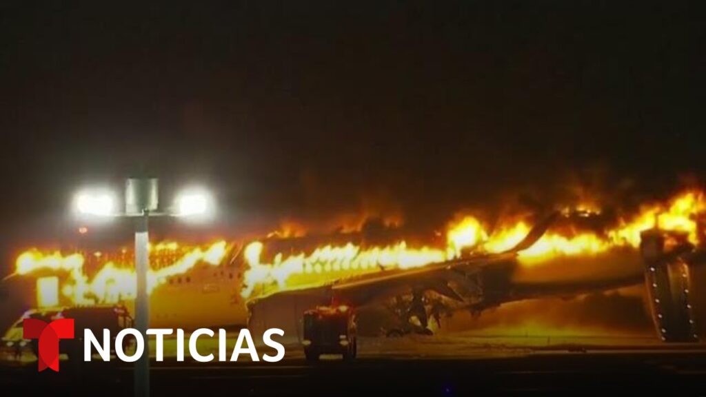 Video oficial de Noticias Telemundo. Un avión de Japan Airlines estalla al momento de aterrizar en el aeropuerto de Tokyo.